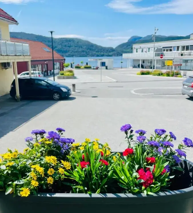 A hotel in the center of the town with a view of the fjord. Good breakfasts. Silence, peace. Good breakfast. Out of season, self-service, but everything is prepared and available. Perfect for a group. Cheaply.